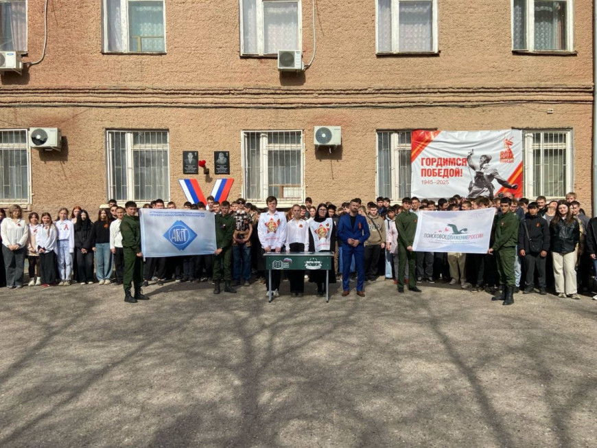 31 марта член совета Астраханского «БОЕВОГО БРАТСТВА» Александр Даиров, активисты «Бессмертного полка России» и поискового отряда «Следопыт» отделения №3 Астраханского государственного колледжа профессиональных технологий провели митинг, дав старт акции «Георгиевская ленточка».