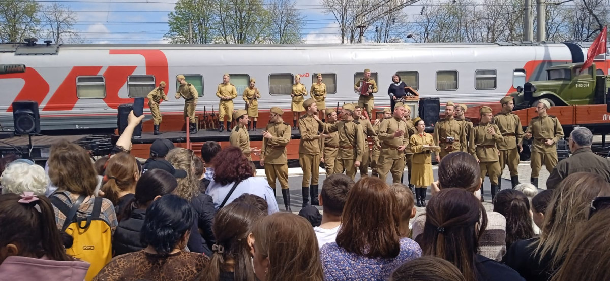 Акции ретро-поезда «Победа» на Северо-Кавказской железной дороге проводится в 11 городах на железнодорожных станциях с 3 по 14 апреля. На железнодорожной станции Нальчика в акции участвовали более 2 000 человек.