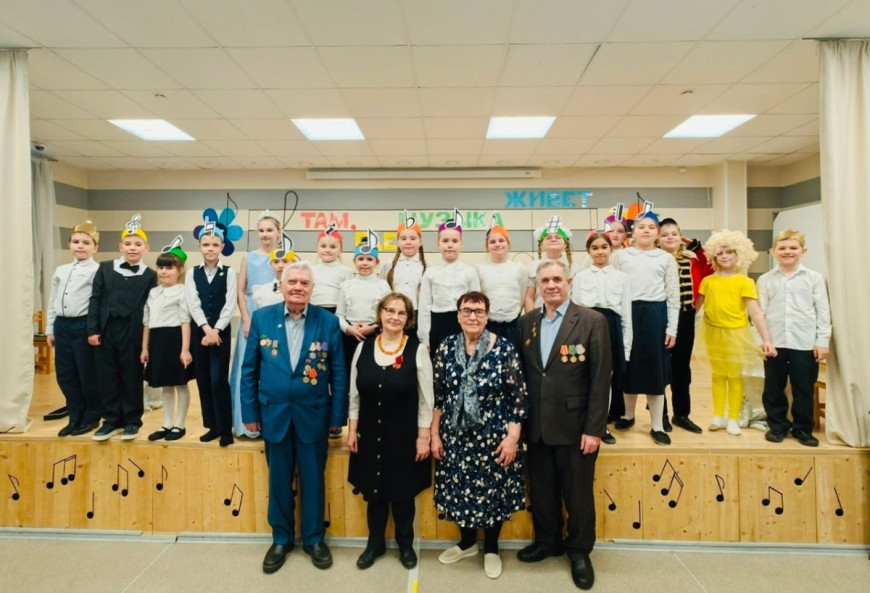 Во второй части урока ветераны были приглашены на гимназический спектакль «Там, где музыка живёт». Мероприятие прошло в рамках празднования 80-летия Победы в Великой Отечественной войне. Участниками урока стали 35 человек, на театральном представлении присутствовали более 150 человек.