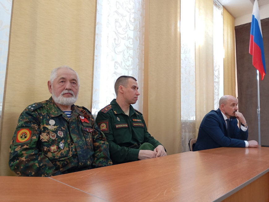 Перед учениками выступили: председатель Кемеровского областного отделения Российского союза бывших малолетних узников фашистских концлагерей 97-летний Шураев Александр Фролович, ветеран боевых действий Казаков Василий и ветеран СВО Вахмистров Павел. Они рассказали о призыве в армию, защите Отечества, о героизме участников Великой Отечественной, о героизме современного поколения в СВО.