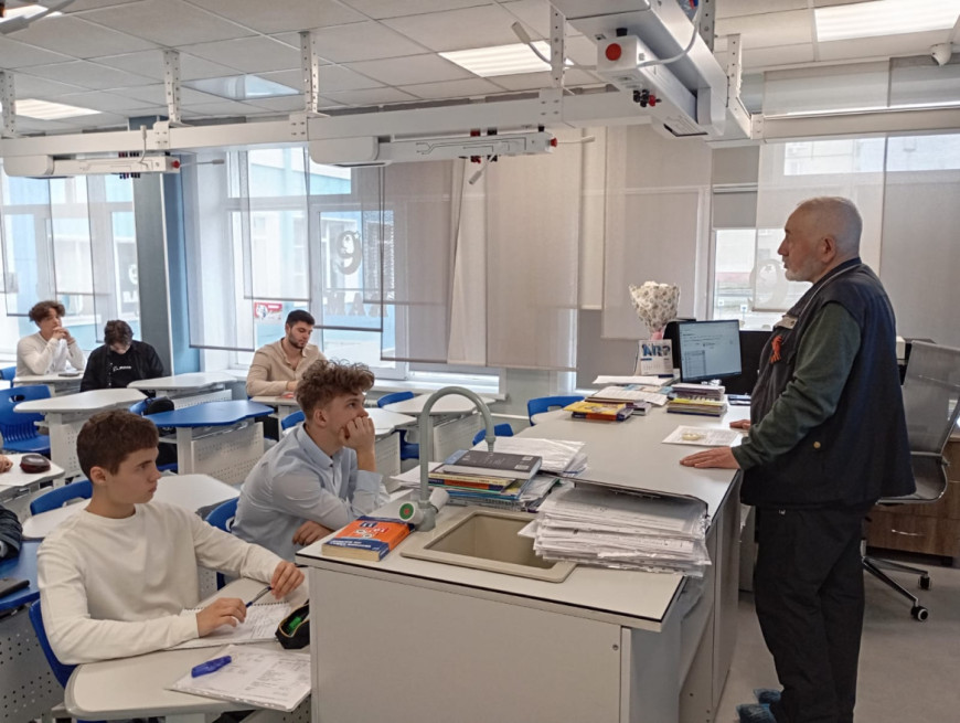 Василий Казаков — ветеран боевых действий на Северном Кавказе, полковник спецназа, кавалер ордена Мужества — рассказал ученикам, по каким стандартам идёт призыв в армию РФ, как можно поступить в военные училища РФ, какие подвиги совершают бойцы и как они похожи на подвиги наших дедов в годы Великой Отечественной. Эта преемственность традиций мужества и патриотизма — наша опора и сила.
