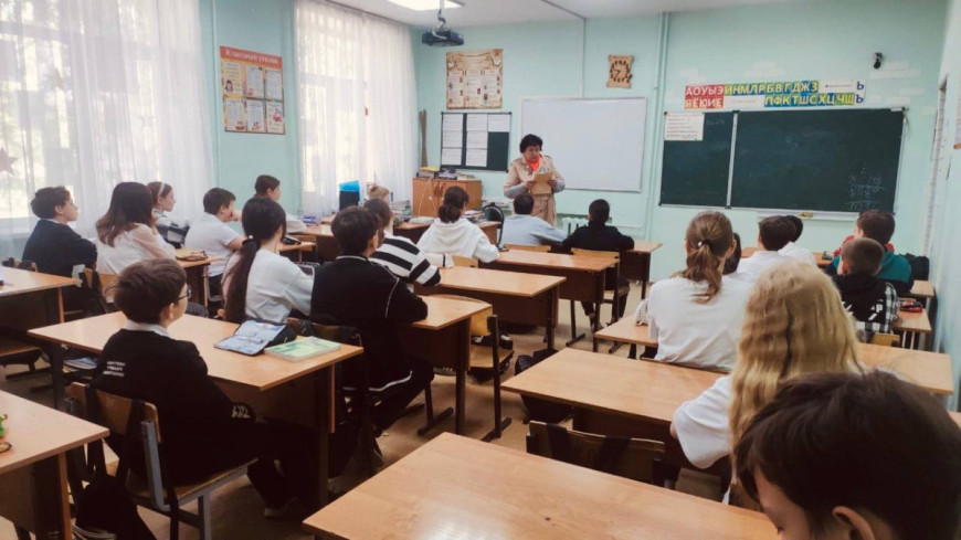 В качестве почётного гостя на уроках присутствовала Любовь Сорина — член Астраханского отделения «БОЕВОГО БРАТСТВА», серебряный волонтёр Центра содействия «Добро» и ветеран боевых действий в Афганистане (1982-1984 гг.).
