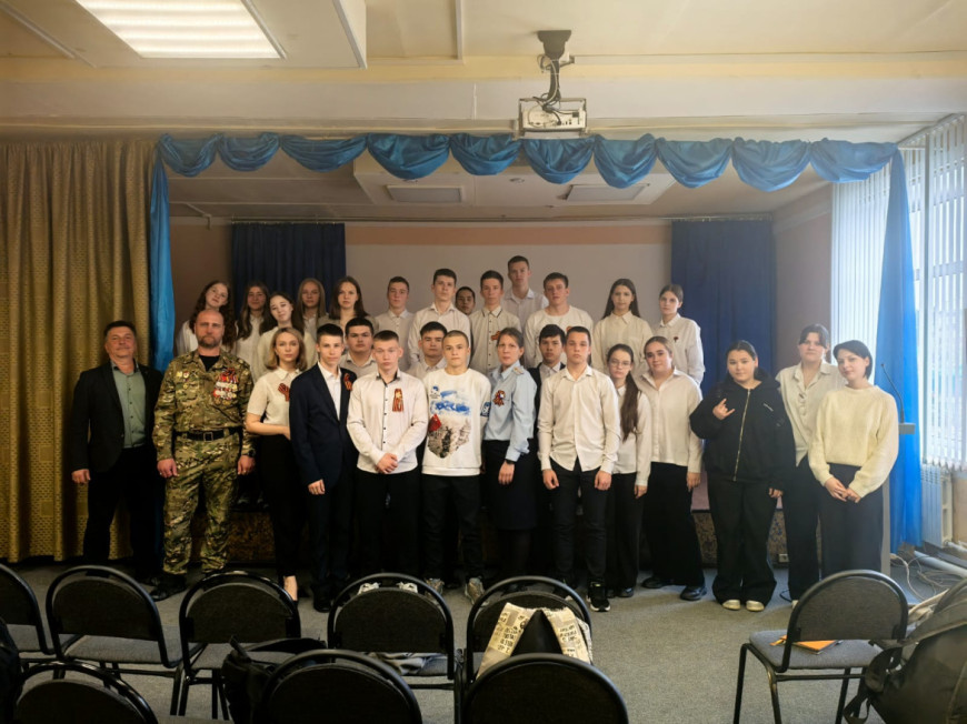 7 мая урок мужества для ребят школы № 7 посёлка Николаевки провёл ветеран СВО, председатель совета Камчатского отделения «БОЕВОГО БРАТСТВА» Сергей Еремеев.