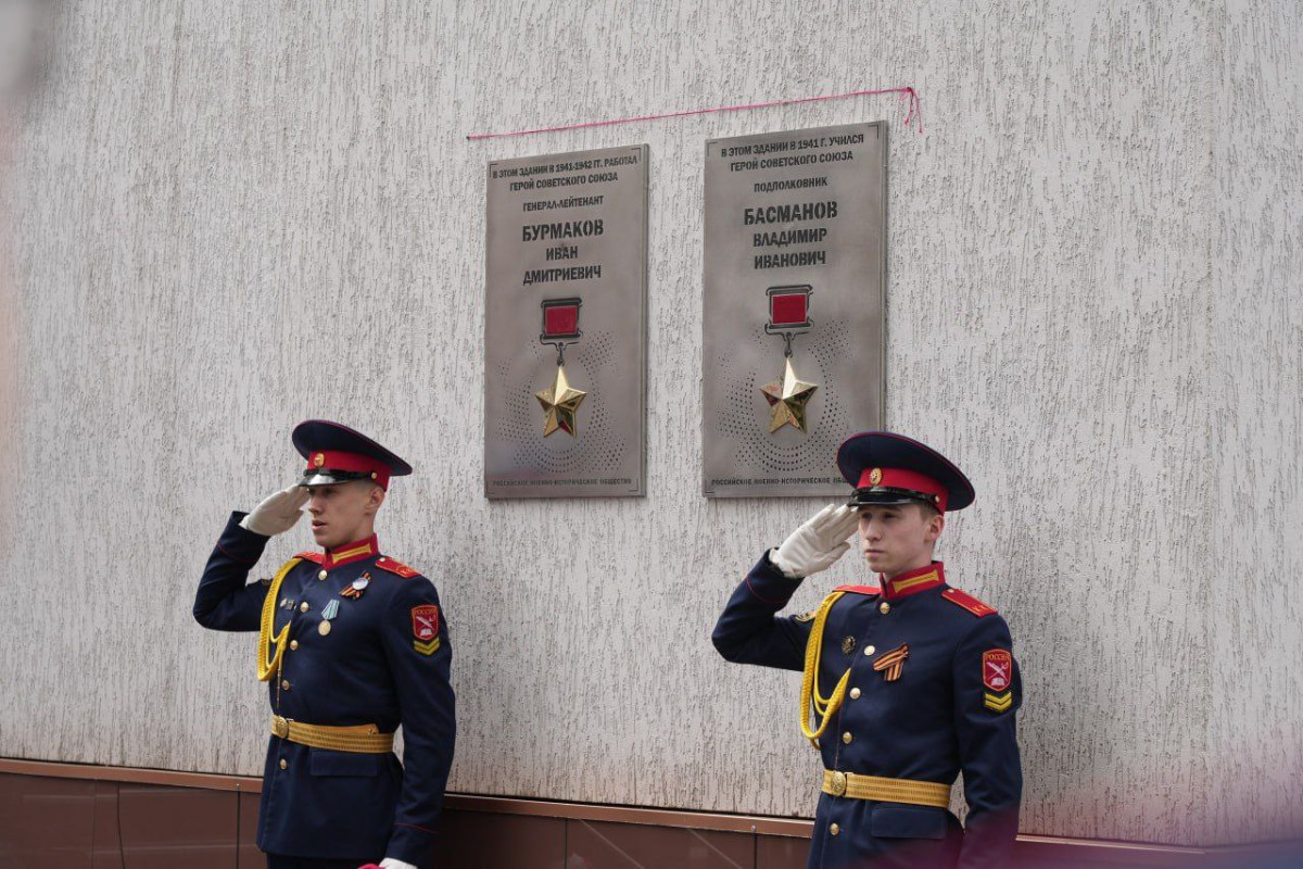 8 мая в Кемерове торжественно открыли четыре мемориальные доски. На здании Губернаторской кадетской школы-интерната МЧС, где ранее располагалось Кемеровское военное пехотное училище, увековечили имена его начальника Ивана Дмитриевича Бурмакова и выпускника Владимира Ивановича Басманова. Учащиеся школы № 32 и гимназии №17 будут помнить Героев Советского Союза Федора Леонтьевича Трофимова и Алексея Николаевича Дергача.