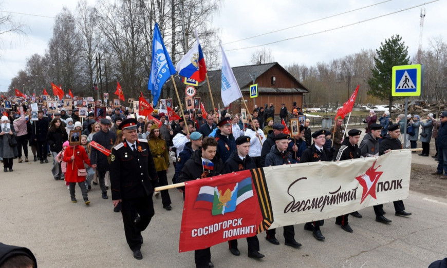 Одним из главных событий этого дня стало возвращение «Бессмертного полка». Жители Сосногорска возобновили традицию, пронеся сотни портретов героев от сквера Победы до площади у Дома детского творчества. Ветераны боевых действий в Афганистане, Чечне и участники специальной военной операции пронесли 15-метровую копия Знамени Победы, ставшего символом героизма, мужества и силы духа нашего народа.