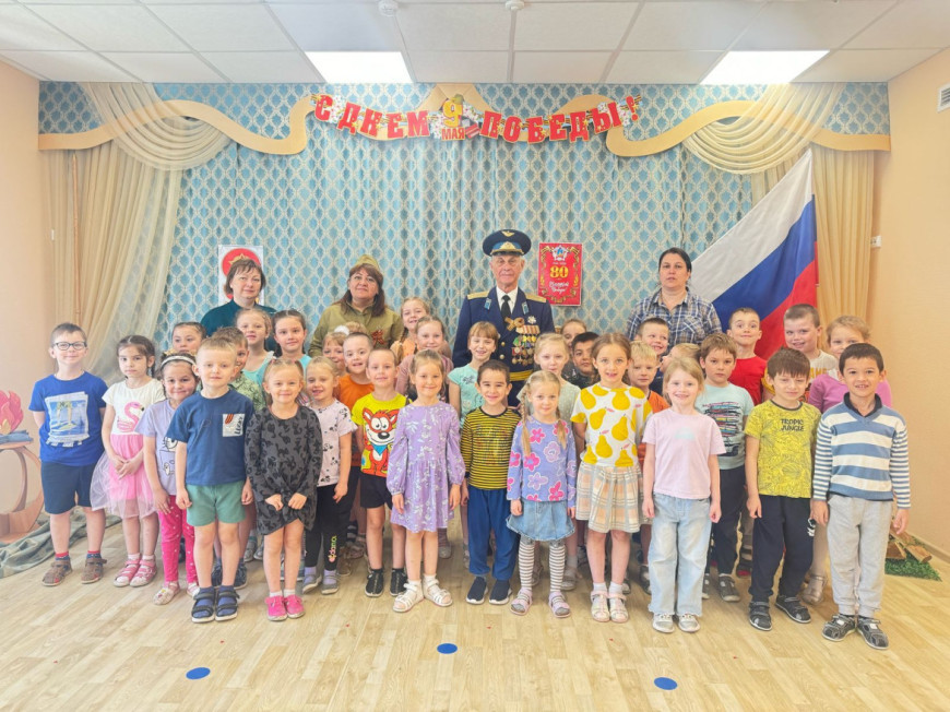 7 мая в Калуге заместитель председателя правления Калужского городского отделения «БОЕВОГО БРАТСТВА» подполковник в отставке Александр Трусевич провел урок мужества в детском саду «Фантазеры», посвященном 80-летию Великой Победы.
