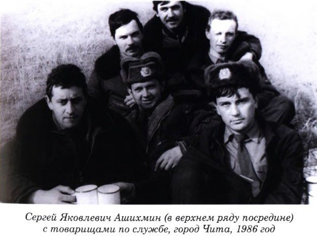 Сергей Сергеевич Ашихмин, сын Сергея Яковлевича Ашихмина роассказывает: «В нашей семье наряду с наградами отца бережно хранятся его письма, написанные в августе-сентябре 1988 года. Последнее письмо от него пришло 4 октября 1988 года, уже после его гибели. Основные темы писем — условия службы и выполнение полётов. Первое письмо не имеет даты, её можно определить лишь примерно. В нём описывается прибытие на место прохождения службы, а также условия проживания. Уже из первого письма мы узнаём, что скоро начнётся вывод войск из Афганистана: «…прилетели мы сюда первого числа (августа. — Прим. С. С. Ашихмина) вечером. Долетели нормально. Встретили нормально, но впечатление такое, что нас здесь не ждали. Уже (неразборчиво), что замены не будет. Когда нас выведут, пока никто точно не знает…» Парой слов описана обстановка: «…Летают сейчас мало. В основном ночью». Афганистан — это страна гор — 70% страны покрыты горными вершинами, и в письмах о них также есть упоминания: «Горы кругом, правда не очень высокие, но чем дальше от города, тем выше. Сам город также расположен на холмах».