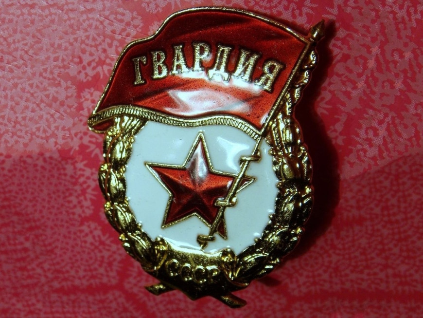 21 мая 1942 года указом Президиума Верховного Совета СССР «О введении для военнослужащих гвардейских частей и соединений Красной армии и Военно-морского флота гвардейских военных званий» утвержден нагрудный знак «Гвардия» СССР.