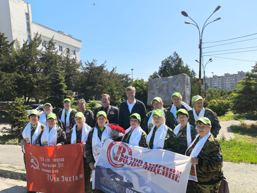 Участники мероприятия почтили минутой молчания память погибших, после чего возложили цветы к мемориалам сквера.