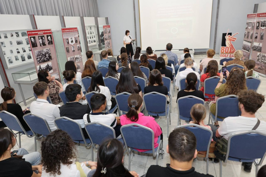 Айнура Иманалиева представила доклад о деятельности Астраханского ТЮЗа во время войны. Александр Даиров рассказал о работе астраханских патриотов в области патриотического воспитания и увековечения памяти погибших защитников Отечества.
