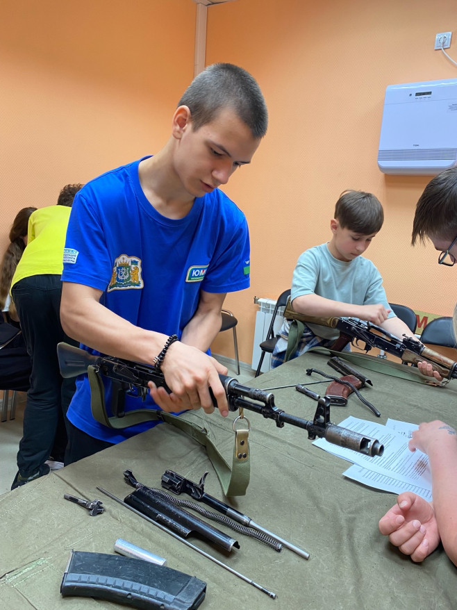 В конце мероприятия ребятам была представлена возможность самим провести разборку и сборку автомата Калашникова и детально рассмотреть внутренний механизм автомата.
