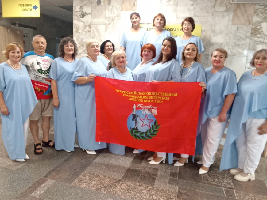 Перед зрителями выступил народный хор «Черёмушки» посёлка Смоляниново Шкотовского городского округа, под руководством Анастасии Доброскок, участники которого не так давно стали членами «БОЕВОГО БРАТСТВА» и, кроме концертной деятельности, активно участвуют в волонтерской работе.
