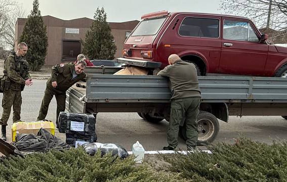 В составе груза вошли радиостанции, огнетушители, дождевики, противодроновые одеяла, бензопилы, молотки, емкости для воды, комплекты нательного термобелья, предметы личной гигиены, домашняя консервация, выпечка и автомобиль «Нива».