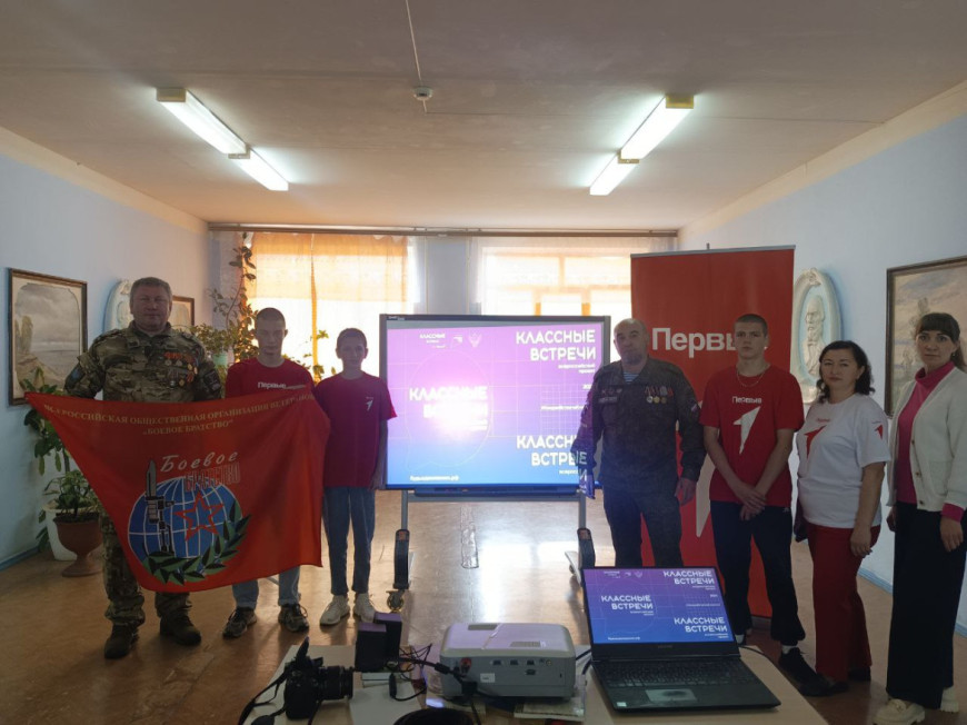 Отряд из 35 детей показал ветеранам кабинеты в которых они занимаются. Ветераны привезли выставку трофейного вооружения, доставленного из поездок с гуманитарным грузом в зону СВО и рассказали о каждом экспонате, представили фотографии встреч с бойцами, говорили о том, как устроен на фронте быт.