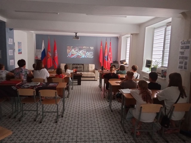 4 июля ветеран Новотроицкого отделения «БОЕВОГО БРАТСТВА» Алесей Клок и член правления Наталья Князева провели урок мужества с 15 ребятами из команды Новотроицкого дворового клуба имени А. Матросова.