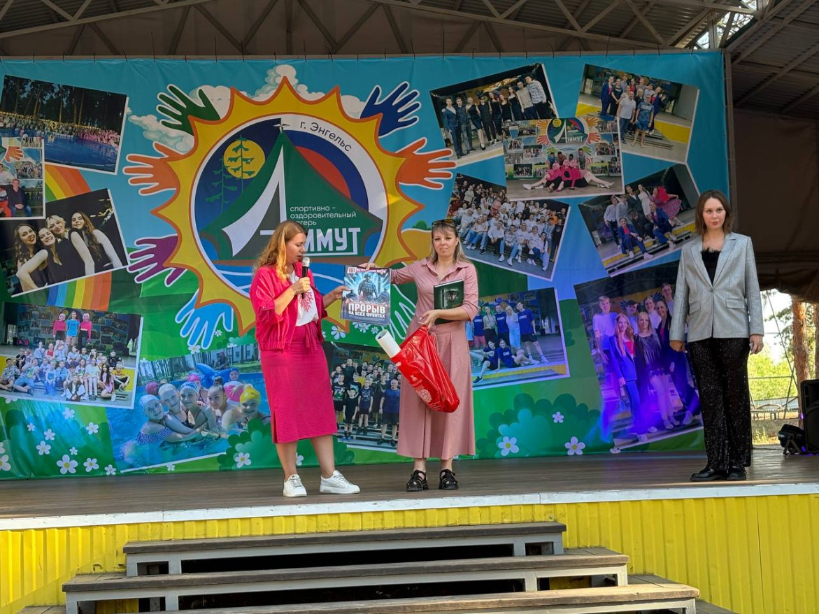 В ходе встречи в детском оздоровительном лагере «Азимут» Энгельсского района председатель комитета молодежной политики Саратовской области Ангелина Беловицкая передала том Книги Памяти и плакат для проведения с детьми уроков мужества.