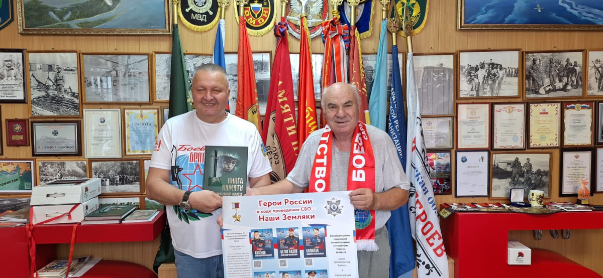 Заместитель председателя Общественной палаты Саратовской области, руководитель регионального отделения «БОЕВОГО БРАТСТВА» Сергей Авезниязов вручил 41-й том «Книги памяти Саратовской области» и изданные при поддержке города плакаты с земляками-Героями России, удостоенными высокого звания в ходе проведения СВО, председателю правления первичного отделения «БОЕВОГО БРАТСТВА» в ЗАТО «Светлый» Борису Буинцеву, председателю правления Ртищевского районного отделения Сергею Клещеву, председателю правления Шиханского городского отделения Сергею Мишину, члену Заводского первичного отделения Саратова Дмитрию Канаеву.