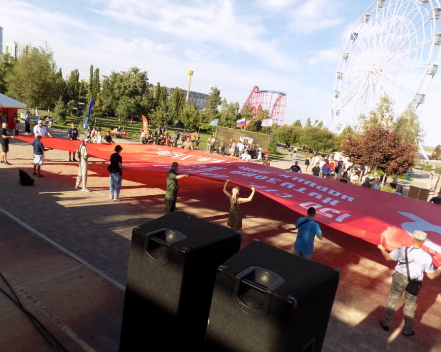 На территории парка в Волгограде ветераны, члены областного отделения организации “БОЕВОЕ БРАТСТВО” развернули Знамя Победы. В мероприятии приняли участие 93 человека.