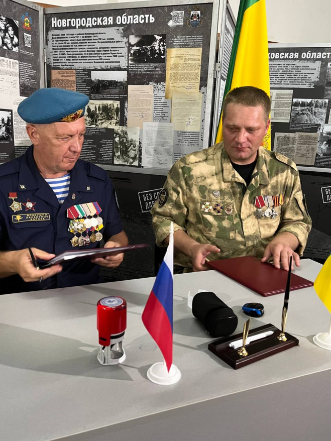 21 августа руководитель Пензенского регионального отделения «БОЕВОГО БРАТСТВА» Юрий Краснов и председатель Пензенской региональной общественной организации «Ассоциация СВО» Александр Артамошкин в зале музея поисковых отрядов «Свидетели бессмертного подвига» подписали соглашение о сотрудничестве и взаимодействии.