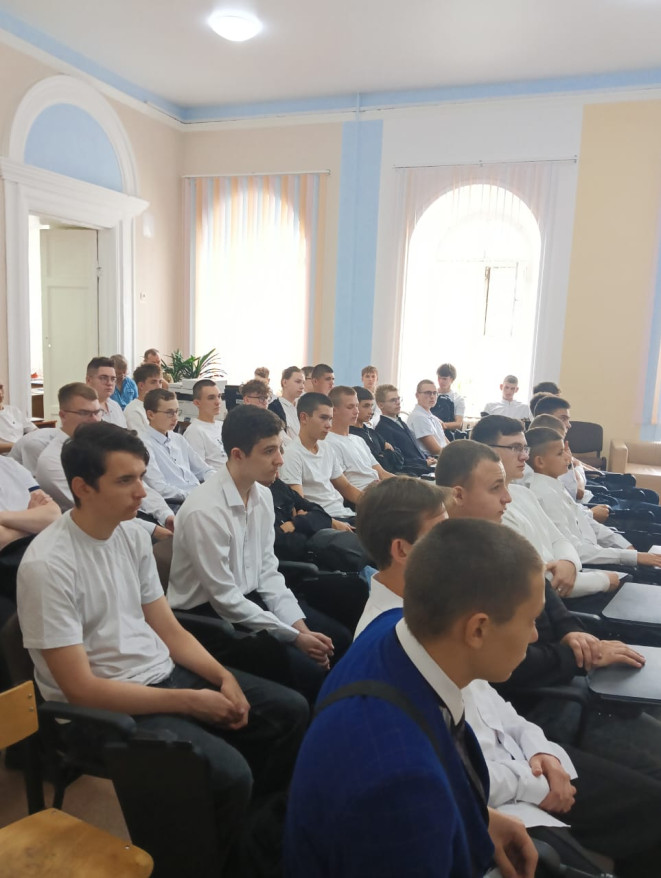 На встрече говорили о страшном теракте, произошедшем 1-3 сентября 2004 года в Беслане Северной Осетии. И хроника тех дней проходила перед собравшимися на экране. Виктор Жиряков обсудил со студентами события тех дней, пожелал им помнить о Беслане не только в годовщину трагедии, но и каждый день.