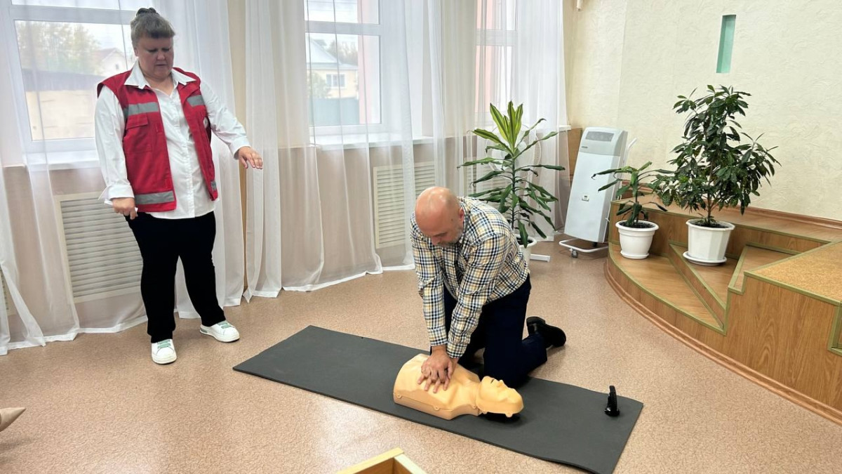 Ветеран, член Марийского “БОЕВОГО БРАТСТВА”, глава администрации Советского района Евгений Пушкин с коллегами и работниками образовательных организаций получили навыки оказания помощи потерявшему сознание человеку, помощи при первых признаках дыхательных нарушений, а также попробовали сделать сердечно-легочную реанимацию.