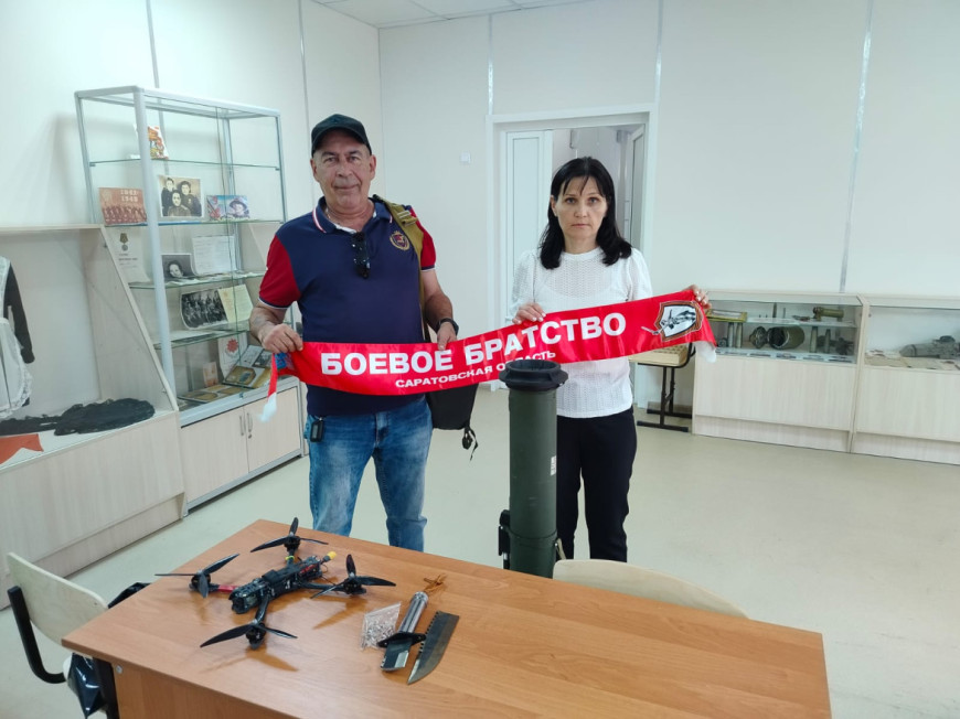 26 сентября представитель Балаковского отделения “БОЕВОГО БРАТСТВА” Александр Борисенков передал в музей школы №13 экспонаты, привезенные из зоны Специальной военной операции.