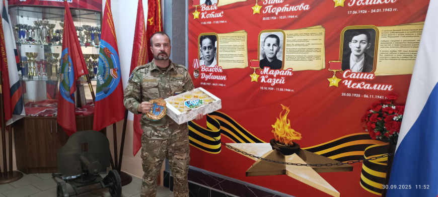 30 сентября руководитель Славянского местного отделения «БОЕВОГО БРАТСТВА» имени полковника А.Б. Пантелеева Александром Казуб передан мёд для одного из подразделений, выполняющего боевые задачи в зоне проведения Специальной военной операции.