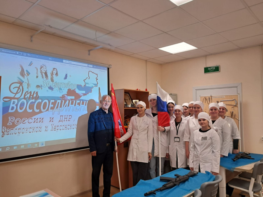 30 сентября ветераны Центрального отделения «БОЕВОГО БРАТСТВА» в Туле Владислав Гайнулин и Андрей Кизиев совместно с сотрудником Тульской областной библиотеки Галиной Губаревой провели урок мужества для студентов областного колледжа культуры и искусств и медицинского колледжа, посвященный Дню воссоединения Донецкой народной республики, Луганской народной республики, Херсонской и Запорожской области с Российской Федерацией.