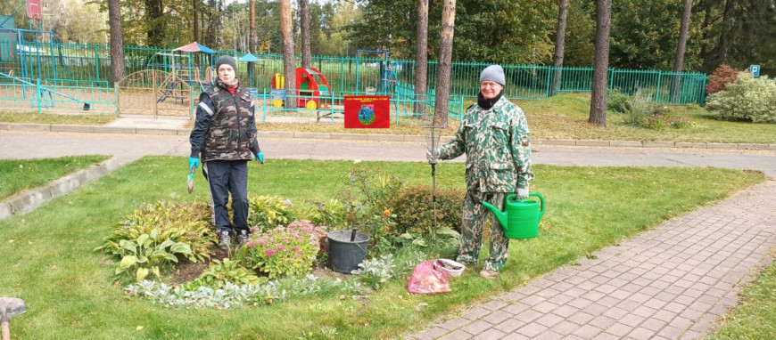 Были удалены сорняки и отжившие растения, наведен порядок на газонах и клумбах, высажены луковицы весенних цветов, внесены осенние удобрения.