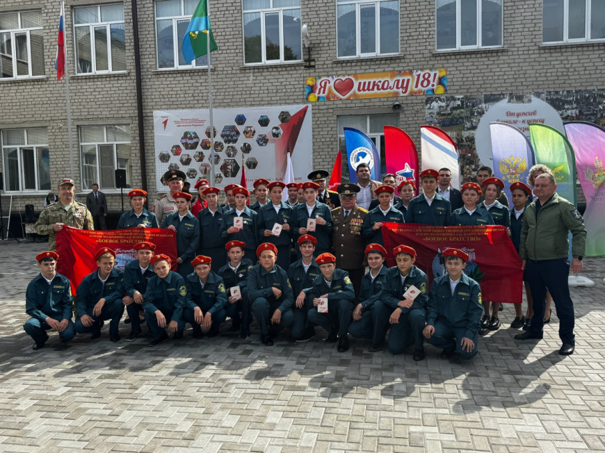 1 октября 70 учащихся школы №18 Славянска-на-Кубани вступили в ряды Всероссийского детско-юношеского военно-патриотического общественного движения «Юнармия».