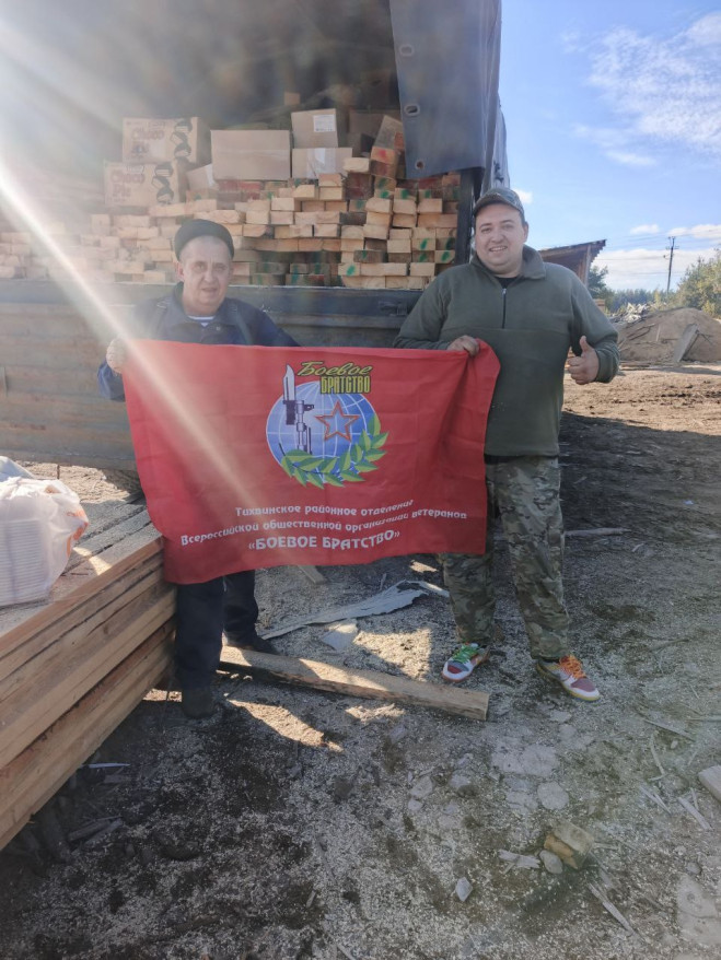 2 октября члены Тихвинского отделения «БОЕВОГО БРАТСТВА» при координации руководителя отделения Фурсова Алексея отправили машину с пиломатериалами, маскировочными сетями, окопными свечами и пирогами в зону СВО. Ленинградская область
