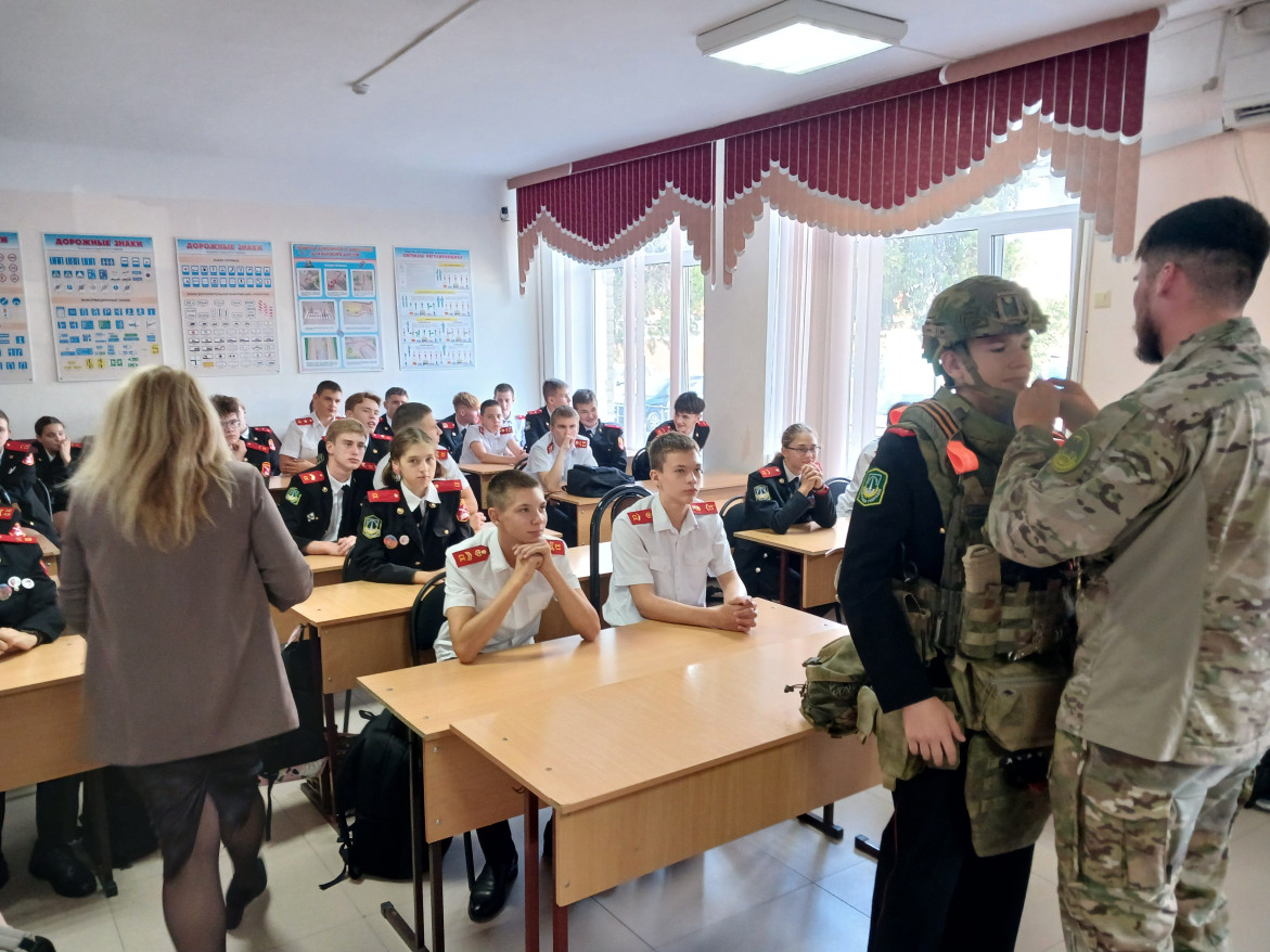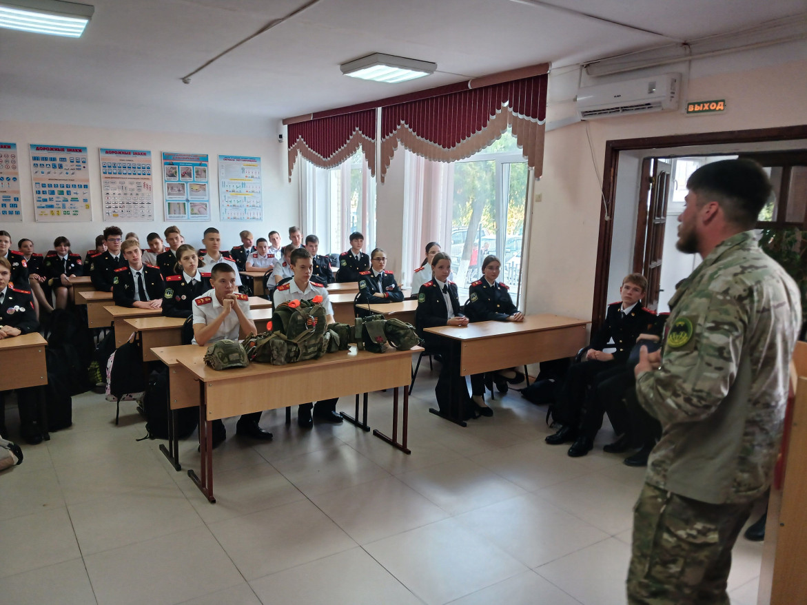 24 сентября в школе №16 Славянска-на -Кубани состоялась встреча учеников 10-х кадетских классов с участником Специальной военной операции Кириллом Г.