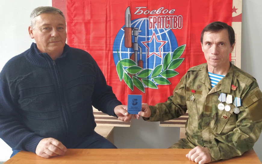 7 сентября в ряды Конаковского «БОЕВОГО БРАТСТВА» вступил ветеран боевых действий в Афганистане Николай Трунтов. Билет организации вручил руководитель отделения Алексей Федотов.