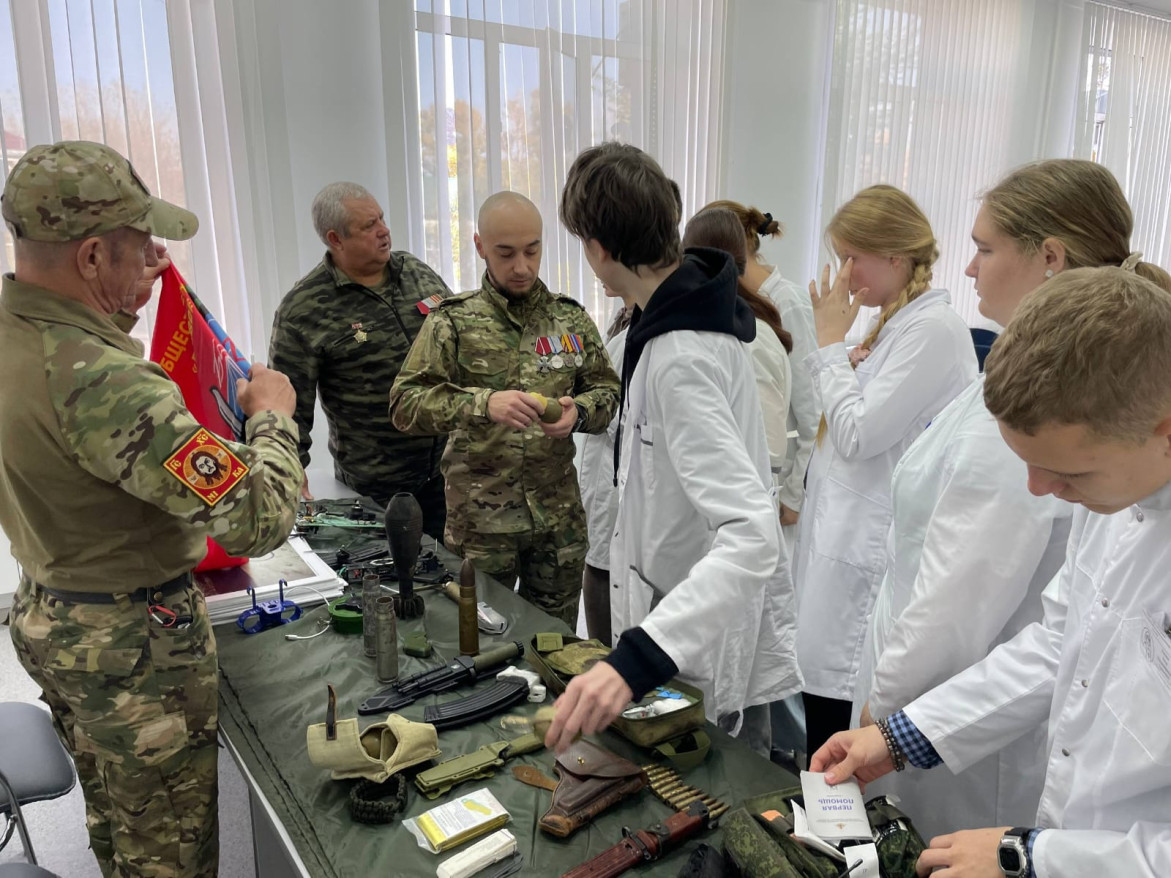 Провели его для студентов руководитель отделения «БОЕВОГО БРАТСТВА» Сергей Никишкин совместно с ветераном В. Стрижаковым и участником СВО Русланом.