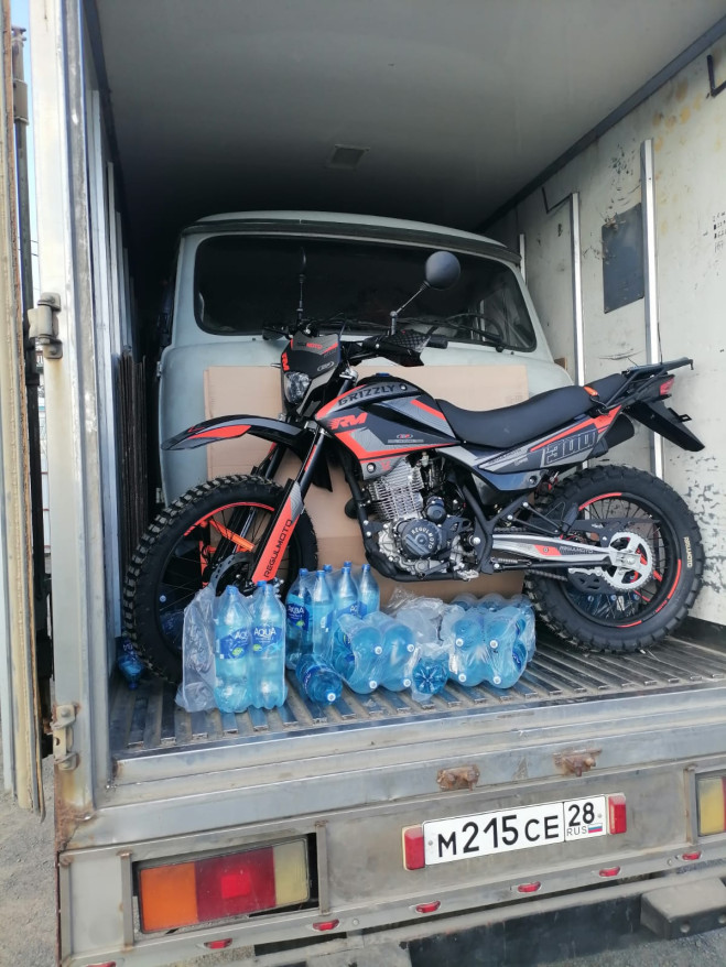 1 октября гуманитарная помощь от Амурского отделения «БОЕВОГО БРАТСТВА» передана в зону СВО на Донецкое направление: автомобиль УАЗ («буханка»), кроссовый мотоцикл, полуприцеп, планшеты, вода.