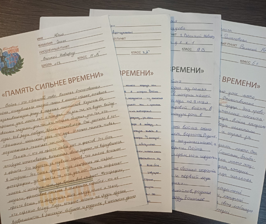 8 и 9 октября в четырех школах Великого Новгорода подвели итоги конкурса «Память сильнее времени» по направлениям «Рисунок» и «Сочинение».