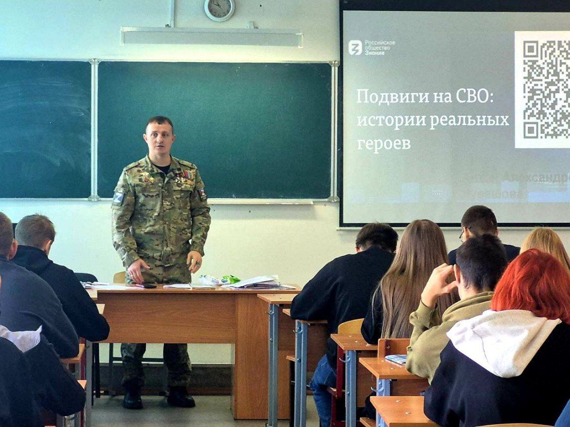Ветеран рассказал студентам несколько реальных историй подвигов. За более чем три года Спецоперации он стал свидетелем множества впечатляющих примеров героизма и стойкости российских воинов. Напомнил, что ежедневно на линии фронта совершаются десятки подвигов, и те, о которых узнают в тылу, – лишь малая часть этих проявлений доблести.