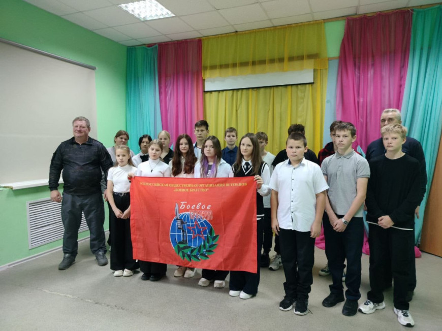Руководитель Никольского районного отделения «БОЕВОГО БРАТСТВА», ветеран боевых действий на Северном Кавказе Дмитрий Москалев рассказал школьникам о причинах и целях Специальной военной операции, о героизме земляков и значимости взаимодействия фронта и тыла.
