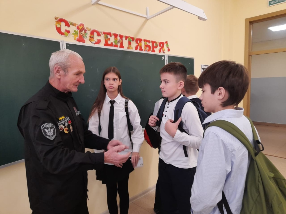 Ветеран рассказал о единении в Советской армии в СССР и во время службы в ОМОН. Обратил внимание на историю и чистоту родного языка. Также ветеран порекомендовал, как через увлечение русским языком можно сплотить класс.