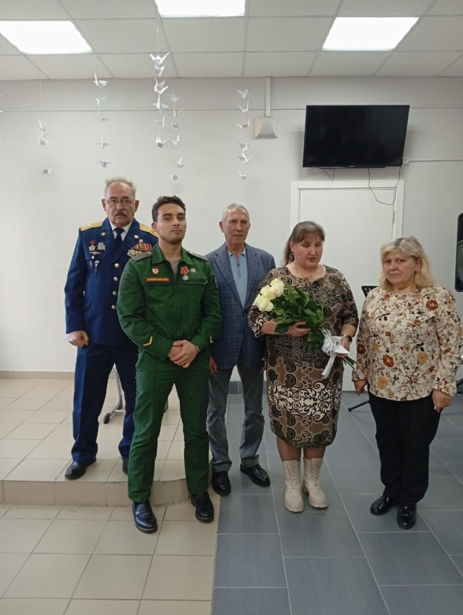 В мероприятии участвовали советник губернатора Ленинградской области Ю. Запалатский, руководитель Кингисеппского отделения «БОЕВОГО БРАТСТВА» С. Марийченко, участник СВО и вдова погибшего на СВО бойца, активисты «Движения первых», ветераны, депутаты, педагоги, около 40 школьников.