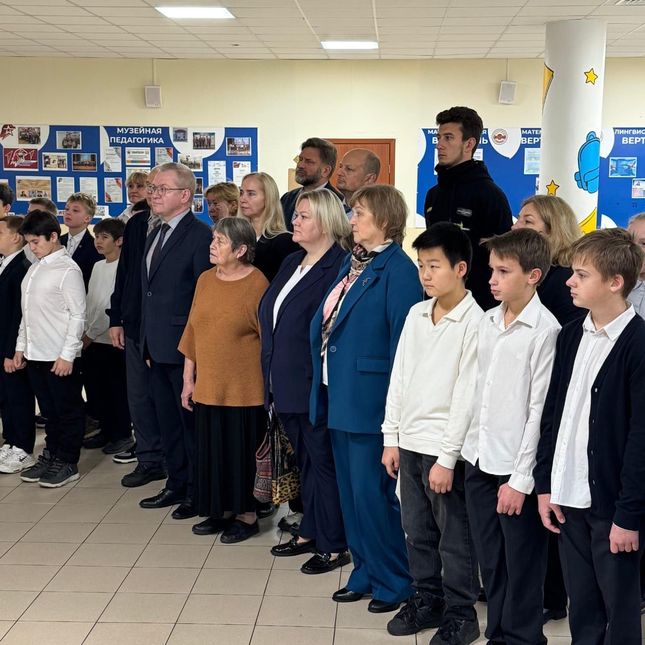 член совета ветеранов района Раменки Николай Ромашечкин, методист Денис Герасев, директор школы №37 Вера Неретина, представители управы и ветеранских организаций, общественные советники, ученики и кадеты школы.