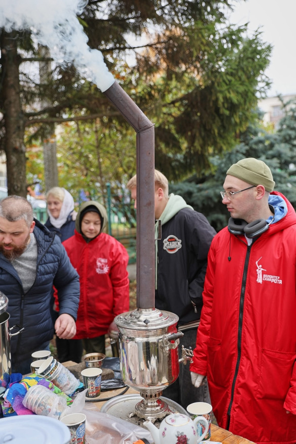 19 октября возле храма святого апостола Андрея Первозванного в Вологде состоялся праздник, посвященный Дню отца. В подготовке события участвовали заместитель главы регионального штаба «Волонтерской роты “БОЕВОГО БРАТСТВА” Вологодской области Никита Ившуков, волонтер Тимофей Н. и активисты центра общественного развития и добровольчества «Добро.Центр» Вологды.