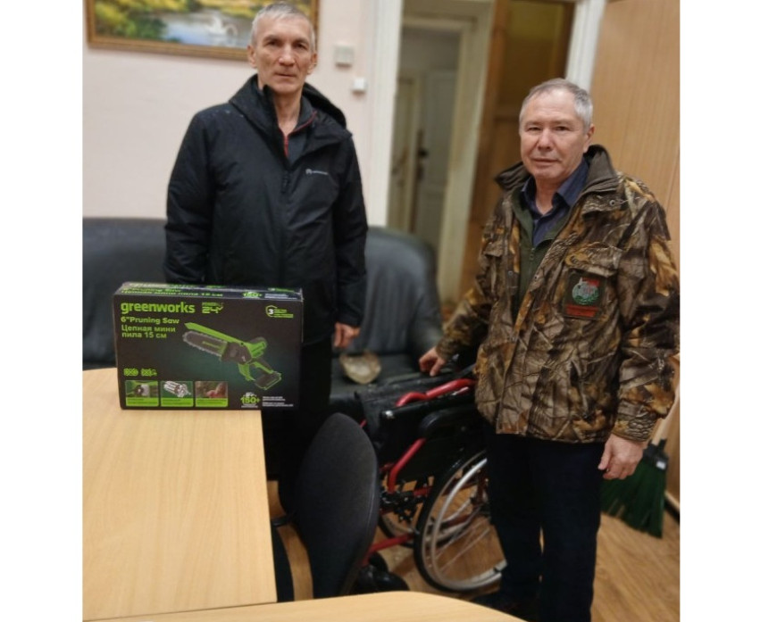Руководитель Ленинского районного отделения «БОЕВОГО БРАТСТВА» Ульяновска Марат Юсупов доставил от имени организации для нужд госпиталя мини-пилу и коляску для передвижения раненых бойцов.