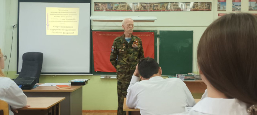 Темой стало противодействие терроризму на территории России. В ходе урока были раскрыты виды и пути произошедших в нашей стране терактов. На примере гибели военкора Владлена Татарского в результате взрыва в кафе Санкт-Петербурга доведено, что принимать от кого-либо и передавать кому-либо вещи, предметы запрещено.