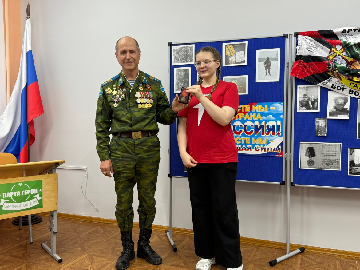 Ветераны вместе с коллегами из других общественных организаций выступили с патриотическими речами, выразили слова благодарности педагогам и родителям за воспитание настоящего героя.