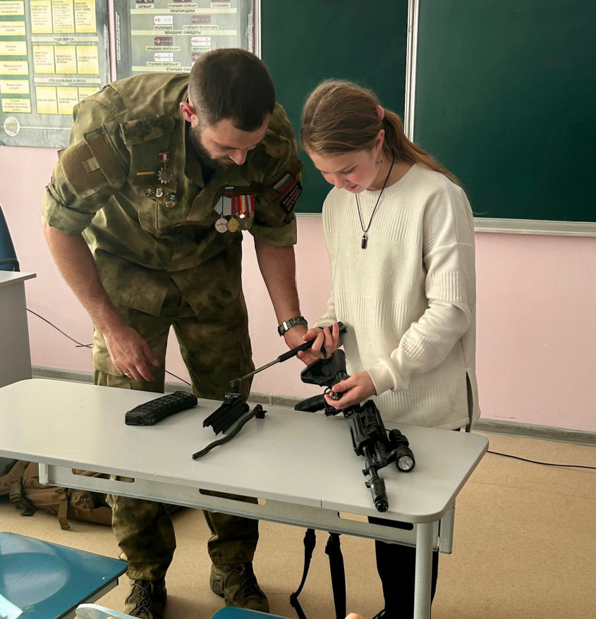Радислав Дзюба поделился с учениками опытом, рассказал о важности патриотизма и долга. Особый интерес вызвала демонстрация образцов армейского снаряжения: выставочных прототипов шлема, бронежилета и оружия. Дети с увлечением рассматривали экипировку, задавая вопросы о военной службе и условиях, в которых приходится работать бойцам. Ветеран подчеркнул, что мужество проявляется не только в бою, но и в ежедневной ответственности.