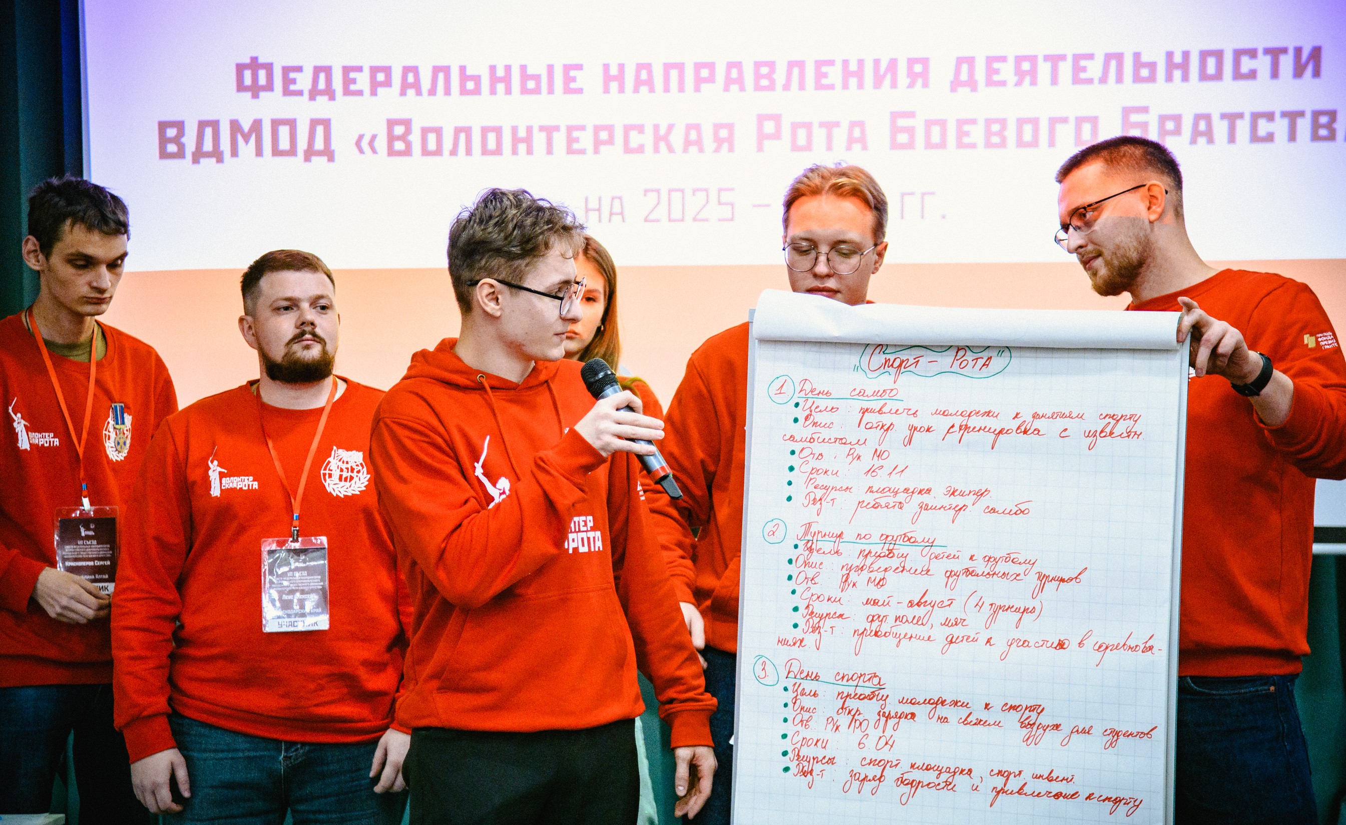 Участники познакомились с ключевыми направлениями работы «Волонтерской роты», узнали о вызовах и запросах, которые сегодня получены в разных сферах работы организации.