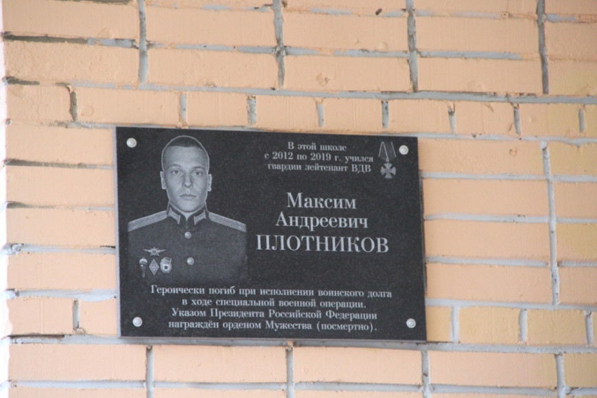 21 октября на фасаде школы №51 в Рязани была открыта мемориальная доска в память о защитнике Родины Максиме Плотникове, погибшем при освобождении территории Курской области от неонацистов.