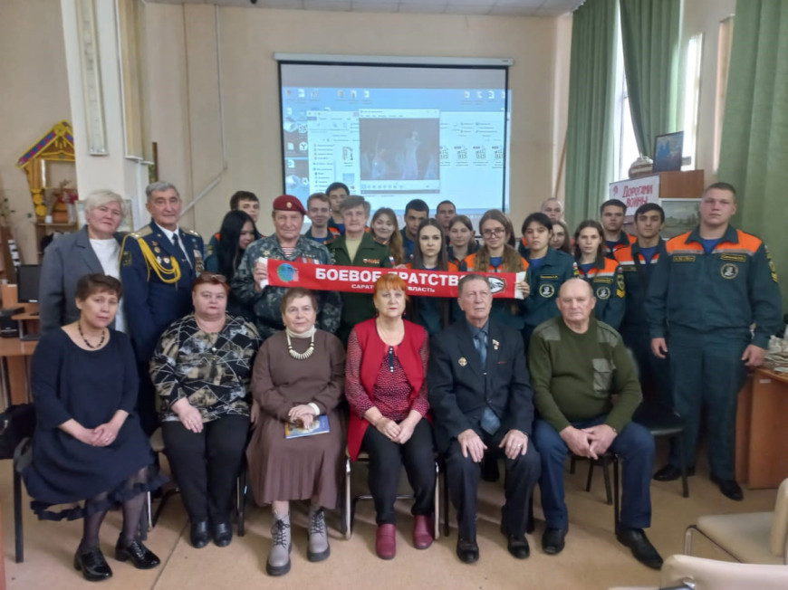 В ходе мероприятия перед учащимися выступили участник контртеррористической операции на Северном Кавказе, председатель правления Ленинского первичного отделения Саратовского городского «БОЕВОГО БРАТСТВА» Валентин Головушкин и участник ликвидации последствий катастрофы на Чернобыльской АЭС, член совета регионального отделения «БОЕВОГО БРАТСТВА», председатель Саратовского городского отделения «Союз Чернобыль», подполковник в отставке Алексей Жуков.