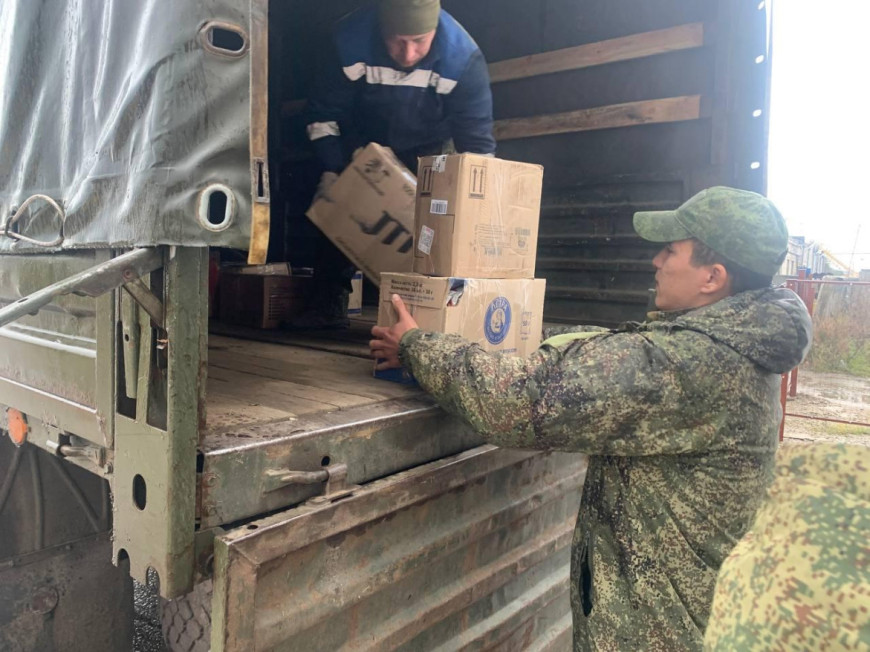 В состав груза вошли продукты питания, медикаменты и вещи, необходимые в быту, собранные жителями Вязьма-Брянской.